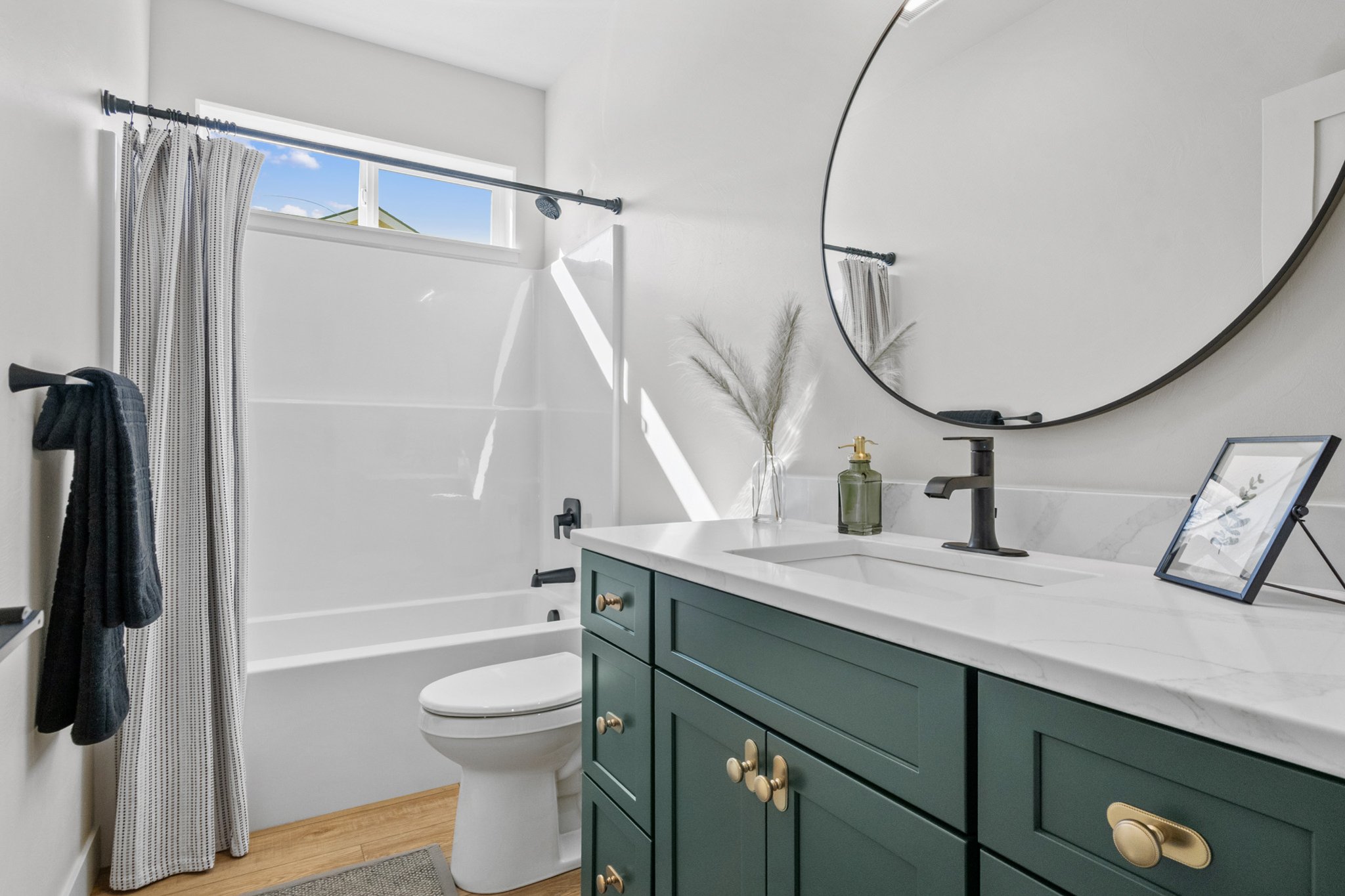 The primary suite offers a true retreat, complete with a luxurious soaking tub and a walk-in shower designed for both relaxation and functionality. Every detail throughout the home has been custom hand-selected by our designer, giving the space a curated feel that sets it apart—making it feel far more like a custom home than a traditional spec build.